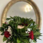 Perché non renderla ancora più emozionante ed elegante con una bella corona di alloro, decorata con bacche rosse e fiori? Magari anche con un bouquet abbinato e un allestimento floreale per la festa o il brindisi.